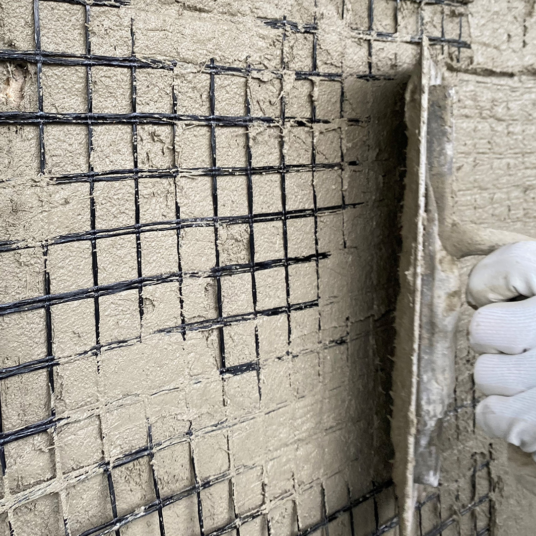 - Applicazione di una rete in fibra (vetro, basalto o acciaio)